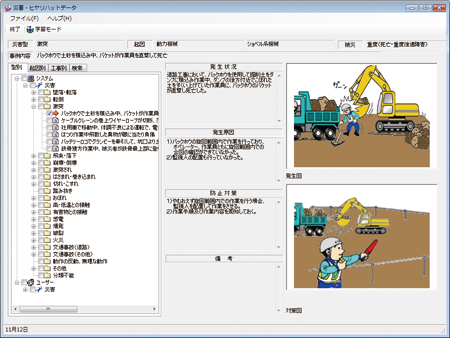 すばやく正確にリスクアセスメントを実行し、リスクに紐づく作業手順書や災害ヒヤリハット事例、多数のイラスト等によって安全資料の作成時間とコストを削減します。