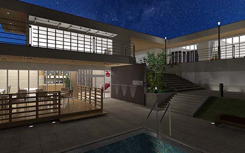 プールの水の表現やステップ等の高さの調節、あとは光源の入れ方ですね。