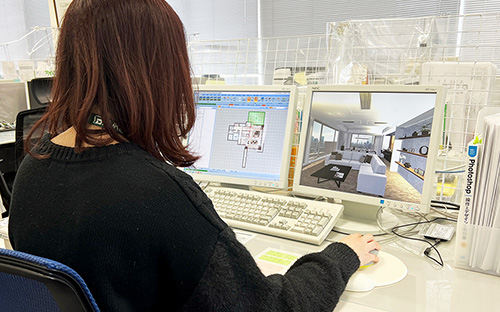 私自身は商談の場に出ることはありませんが、お客様に理想のお住まいをイメージしていただくためのお手伝いに関われることがうれしいです。