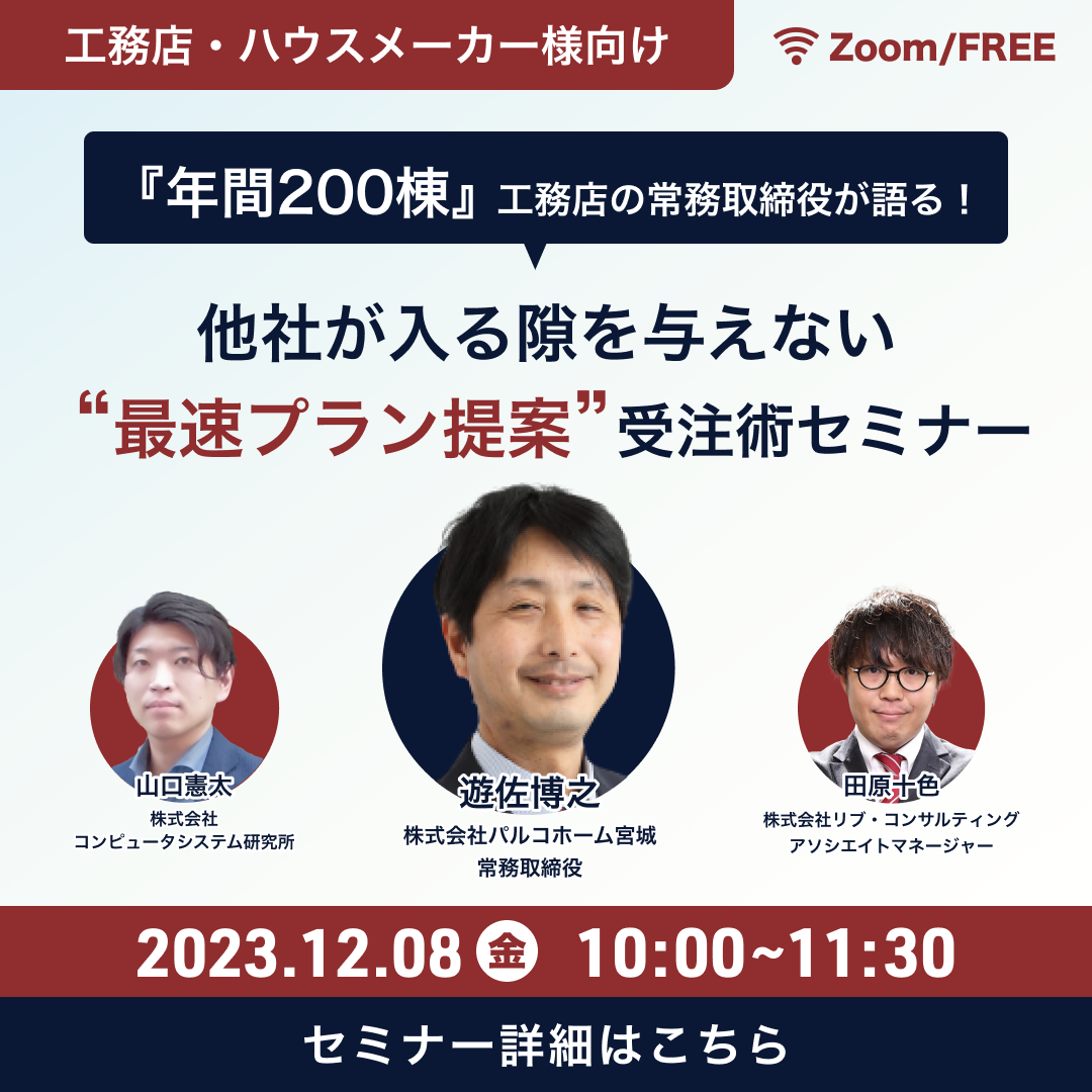 | 参加対象 | 工務店・ハウスメーカーの方 |