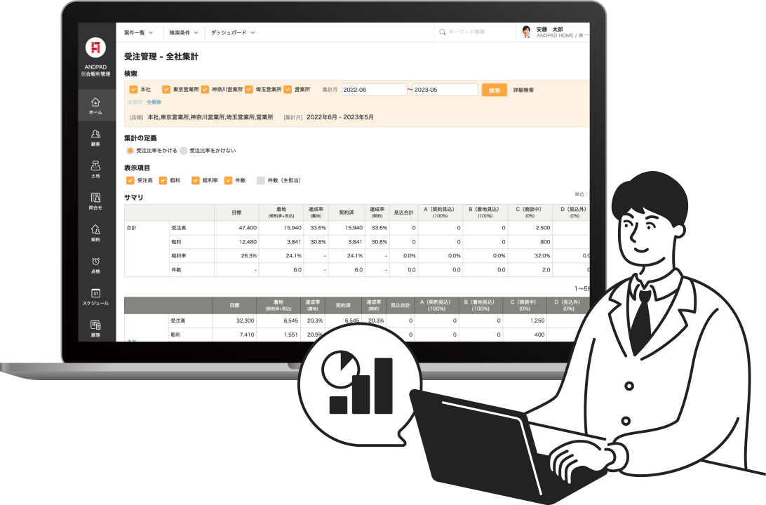 - プレゼン→積算見積→実行予算→発注→請求→支払のスムーズなデータ連動による業務一気通貫術