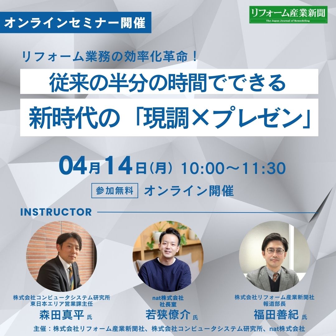 | 主催 | 株式会社リフォーム産業新聞社 株式会社コンピュータシステム研究所 nat株式会社 |