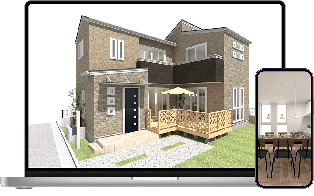 お施主様と打ち合わせしながら入力したプランデータがプレゼン・積算見積・設計図面・構造計算までワンストップで連動する住宅営業戦略システムです。