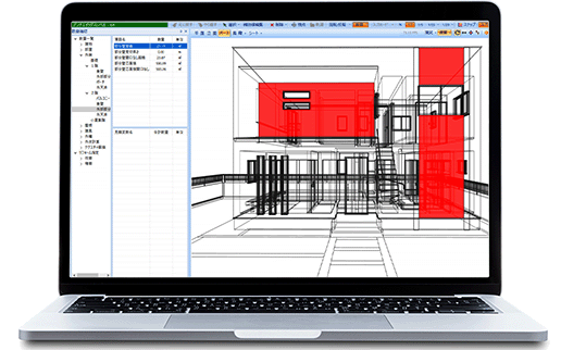 作成した3Dプランは、精度の高い自動積算によって、各部材の数量データの拾い出しが行えます。
