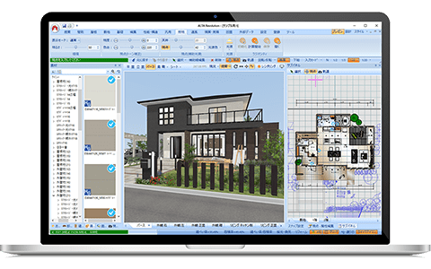 「ALTA」で作成した間取りデータを活用し、パナソニックの住宅設備建材の見積作成、図面出力、画像による提案ボード出力などの一次見積り作成業務の簡易化・スピード化を実現します。