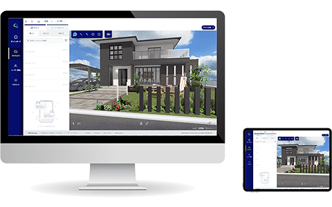 新築マンションの3D-CG内観サービスとして採用実績No,1のサービス「ROOV」の戸建住宅向け新サービス「ROOV for housing」とデータ連携が行えます。いつでもどこでもブラウザでVR体験が可能となり、バーチャル住宅内で双方向チャットコミュニケーションも行えます。