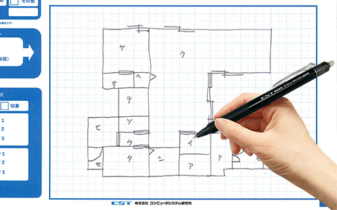 間取りの記入はボールペンを使って行います。定規は必要なく、フリーハンドでOKです。