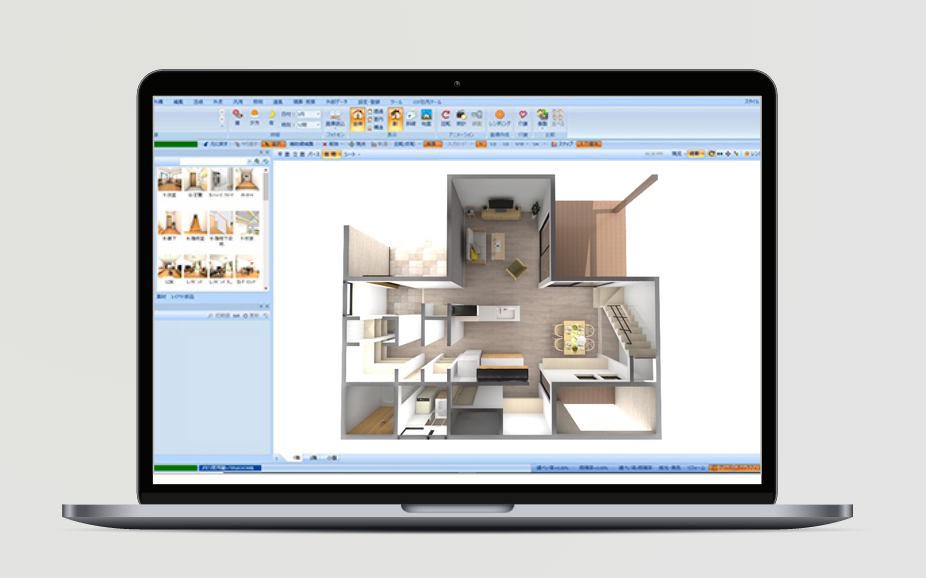 営業マンでも充分使いこなせる簡単な操作性ですので、お施主様と打合せをしながら、その場でイメージをカタチにできます。