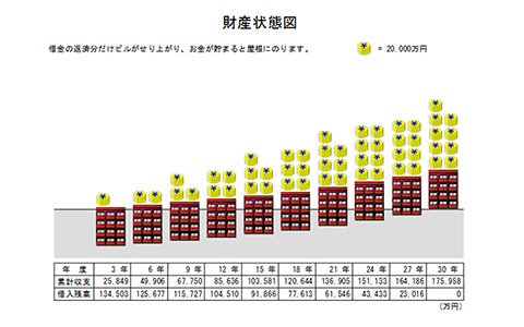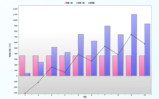 当該賃貸事業を行う場合と行わない場合について、10年間にわたる納税額の比較を行うことができます。