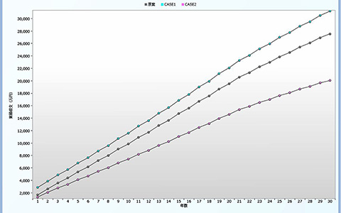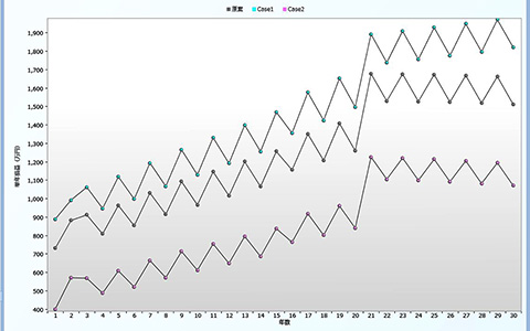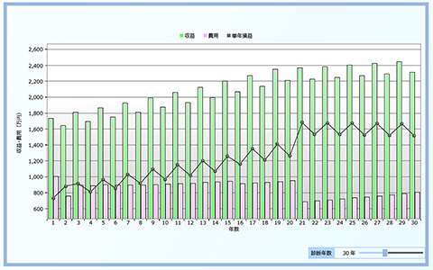 結果は表やグラフで多彩に出力できますので、オーナー様にわかりやすくビジュアルでプランを提案する事が可能です。