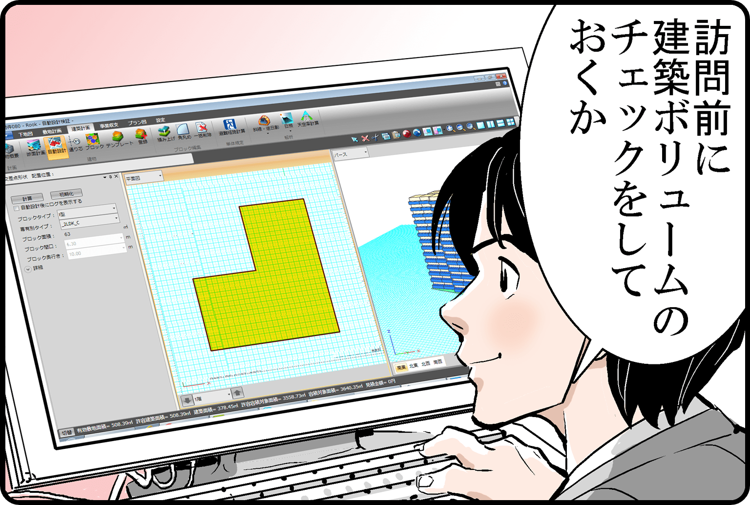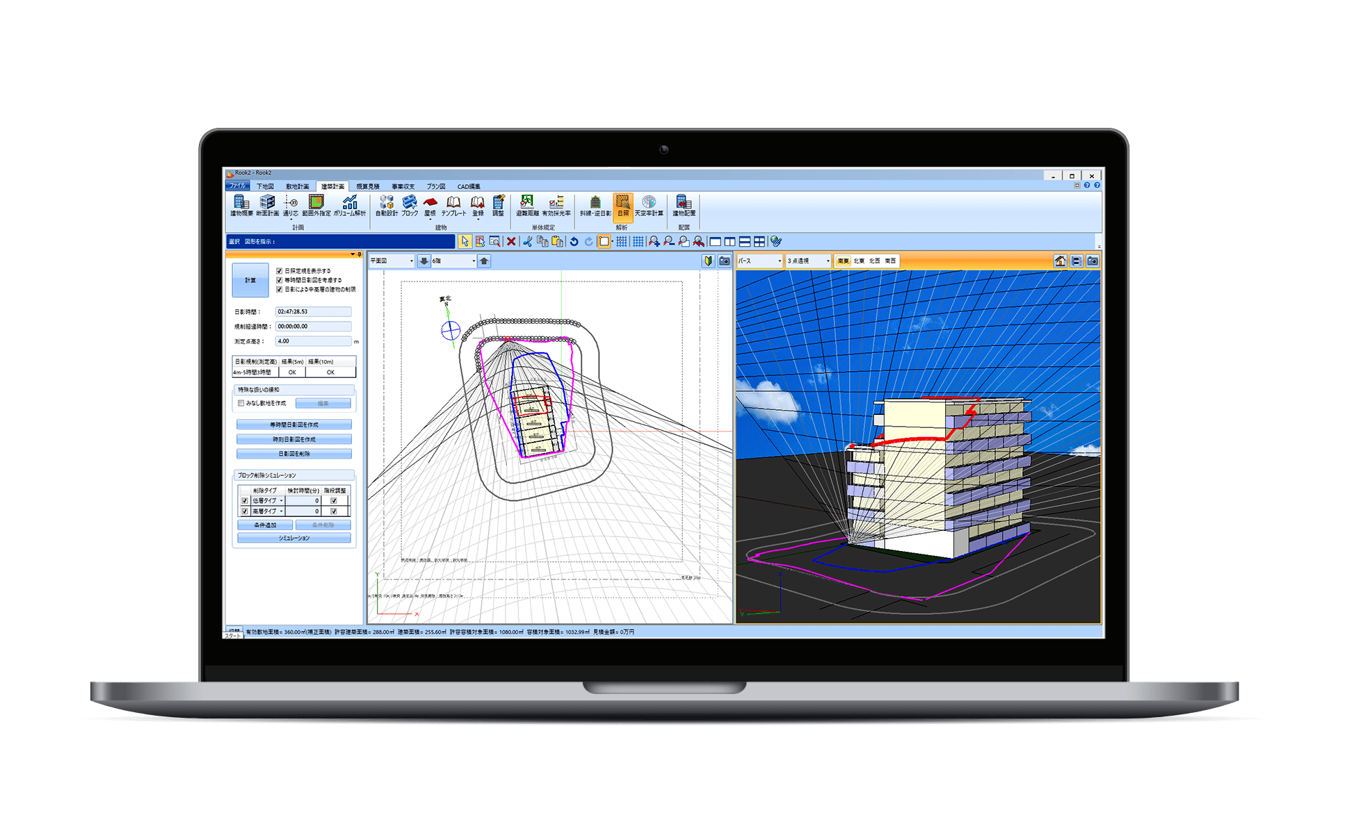 ROOK2を使えば、建築法規に詳しくない営業担当者でも集団規定を考慮した建築計画・収支計画が行えます。