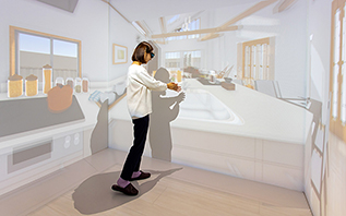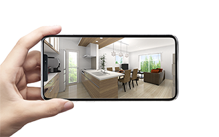 家を建てる前にバーチャルの住宅に入って、高さや広さ、奥行等の住空間を体感していただけます。