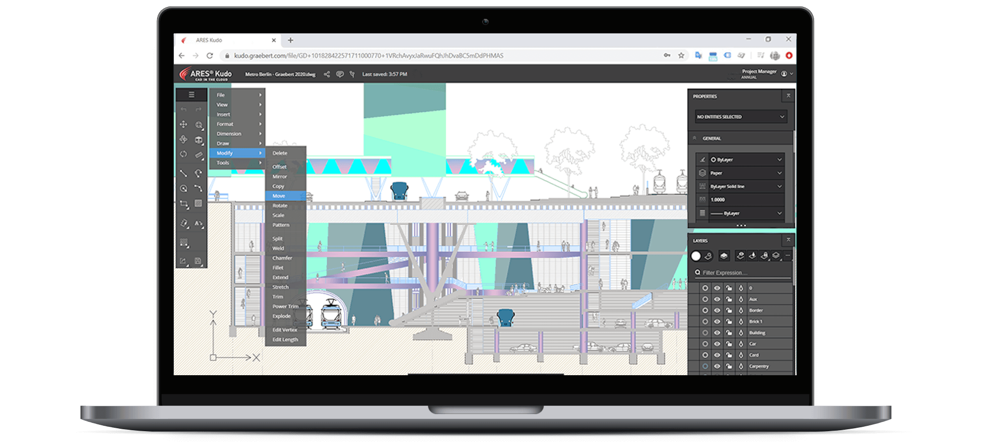 「ARES Kudo」はブラウザ上でCADが動きますので、「ARES」がインストールされていないPCでもCADを操作することができます。