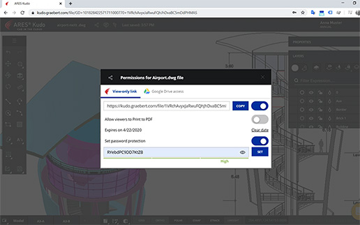 また「表示専用リンク」機能を使えば、ARESのライセンスを持っていない人とも図面を共有することが可能です。