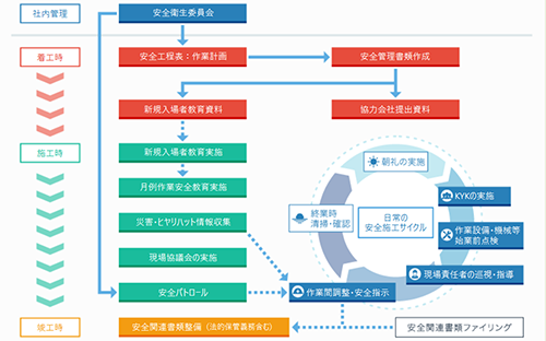 各現場や作業毎に発生する「安全管理」に対し、周知活動や対策を細かくわかりやすく行えます。