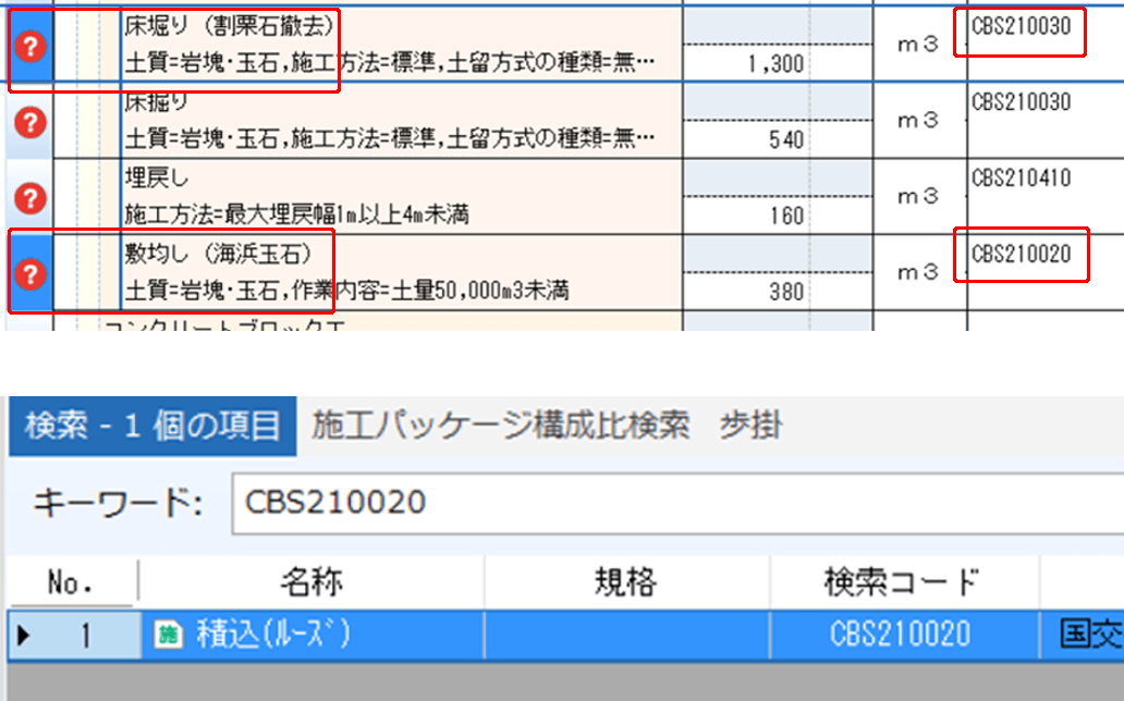 ATLUS独自で施工パッケージなどにコードを付与しているため、内訳書の名称とソフト登録名称が違っても該当のものを一発で引っ張ります。