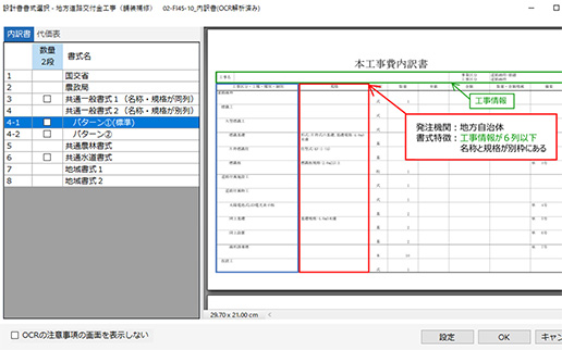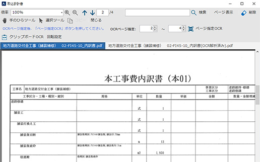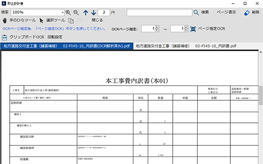 文字情報を持たない画像形式の設計書をOCR(文字認識)機能で解析。データに変換し、積算することが可能です。