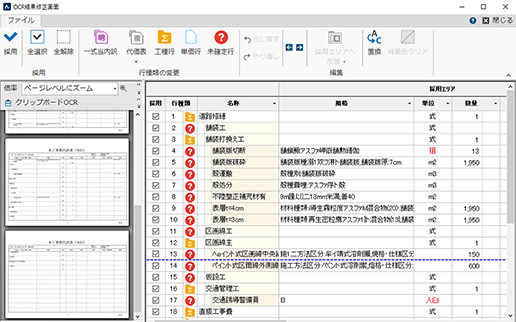 取り込んだ設計書は、設計書画面と連動表示されます。見やすくわかりやすい作業で積算業務を効率化します。