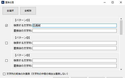 OCRで誤った文字に認識されても、置換処理で簡単に修正が可能です。置換パターンも作成でき、文字修正を効率化します。