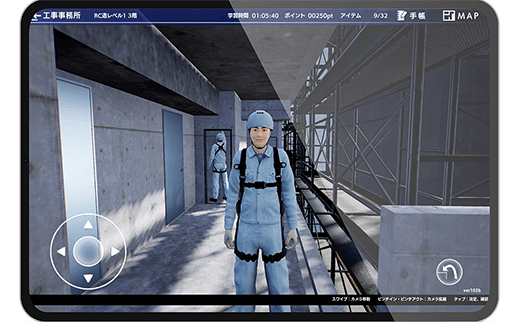 S造とRC造のバーチャル現場内をアバターで移動しながら、随所で発生している問題点を解決していきます。