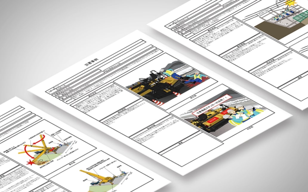 すばやく正確にリスクアセスメントを実行し、リスクに紐づく作業手順書や災害ヒヤリハット事例、多数のイラスト等によって安全資料の作成時間とコストを削減します。
